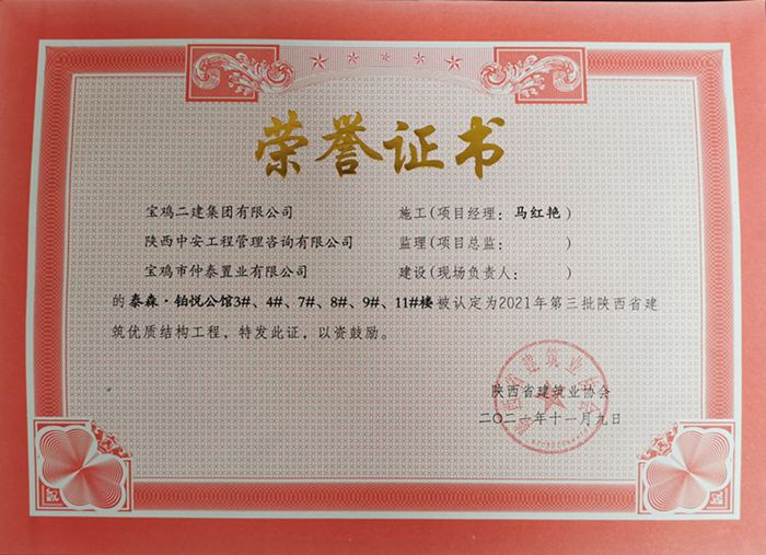2021年度陜西省建筑優(yōu)質(zhì)結構工程(泰森 ? 鉑悅公館3#、4#、7#、8#、9#、11#樓)
