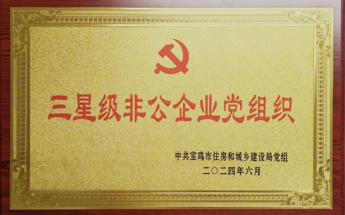 同時(shí),集團(tuán)公司黨委被寶雞市住房和城鄉(xiāng)建設(shè)局黨組命名為“三星級”黨組織。